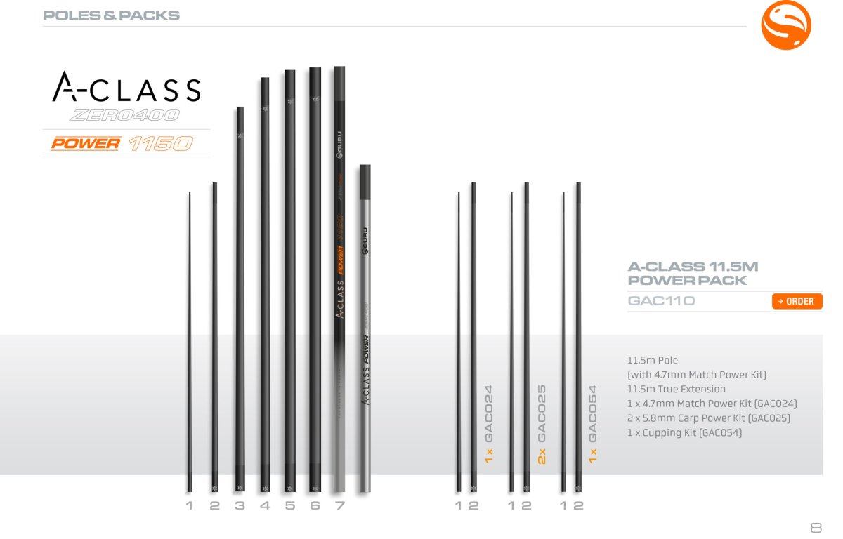 Bloc d’alimentation de Classe A 11,5 M Le poteau de la Classe A de 11,5 m a une action très réactive, mais englobant toujours toutes les caractéristiques puissantes des poteaux de longueur plus courte de la gamme Classe A. Vous remarquerez que les kits supplémentaires avec la perche de classe A de 11,5 m ont été augmentés, répondant aux besoins des pêcheurs qui ont besoin de plus d’options de kit de pointe. L’intégration de cette polyvalence dans l’ensemble des poteaux est un atout clé pour la perche de 11,5 m de Classe A. Colis; Poteau de 11,5 m (fourni avec…
