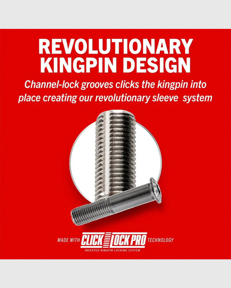 Engineered for maximum durability, unrivaled performance, precision tuning and guaranteed lowest grind clearance of any kingpin on the market.