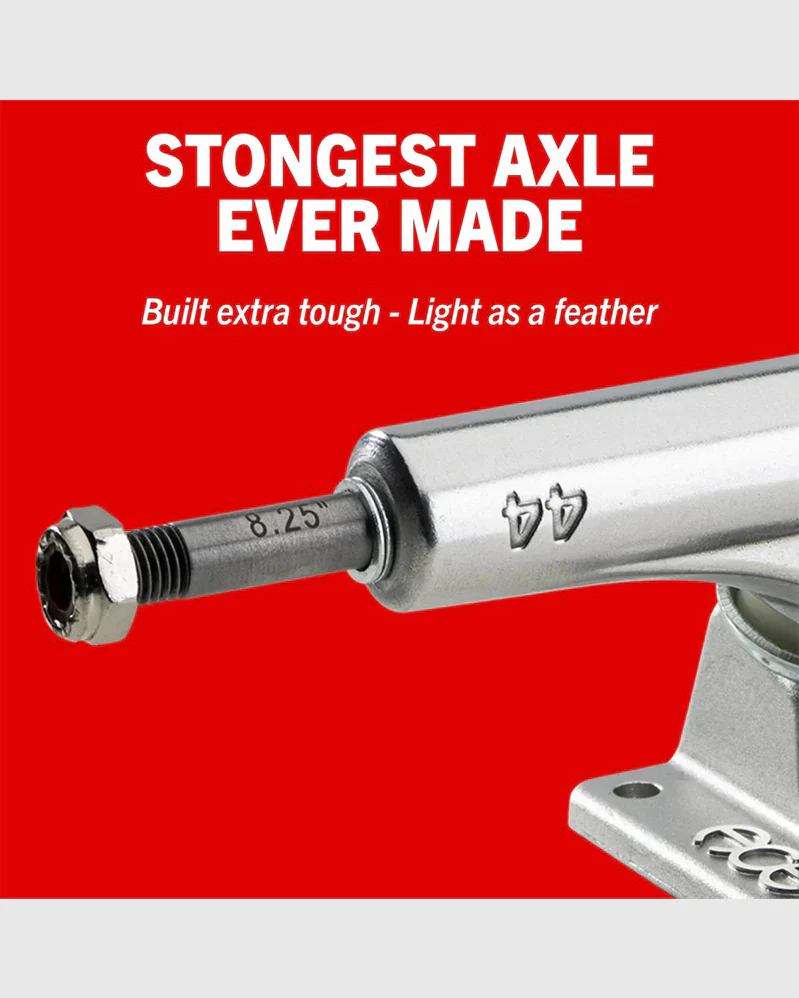 At the heart of our design is a patent pending technology providing a more stable anchor point for the kingpin. Our innovative hollowed axle system and domed-out baseplate make it the strongest and lightest truck we’ve ever created.