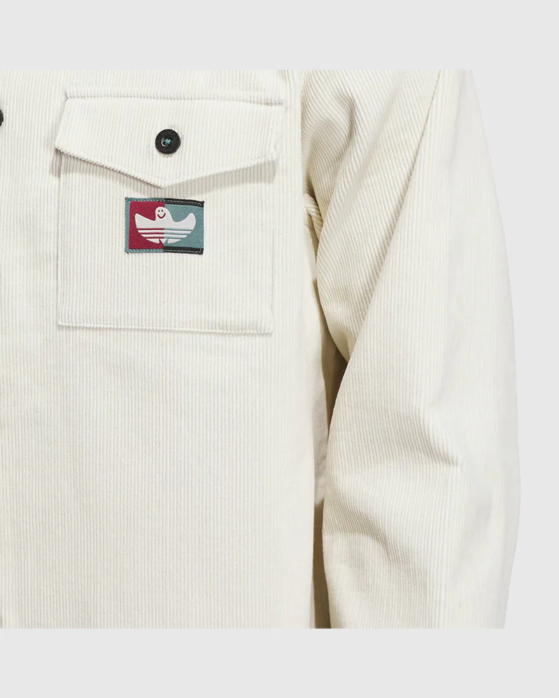 UN DESIGN CLASSIQUE ET UN STYLE DÉCONTRACTÉ PERSONNALISÉS PAR MARK GONZALES. La chemise boutonnée Shmoofoil en velours côtelé réimagine le modèle classique avec un patch Shmoofoil, une coupe traditionnelle et une fermeture entièrement boutonnée. Ce haut est conçu avec UNITEFIT — un système de coupe non-genré créé pour toutes les tailles, genres et morphologies.
