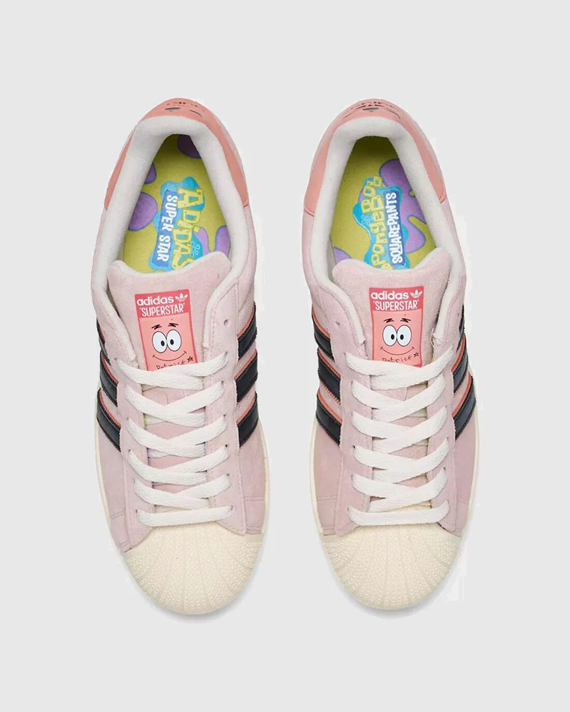 Pour le 25ème anniversaire de Bob L’éponge, Adidas nous gâte avec cette Superstar aux couleurs de Patrick, l’étoile de mer ami de Bob