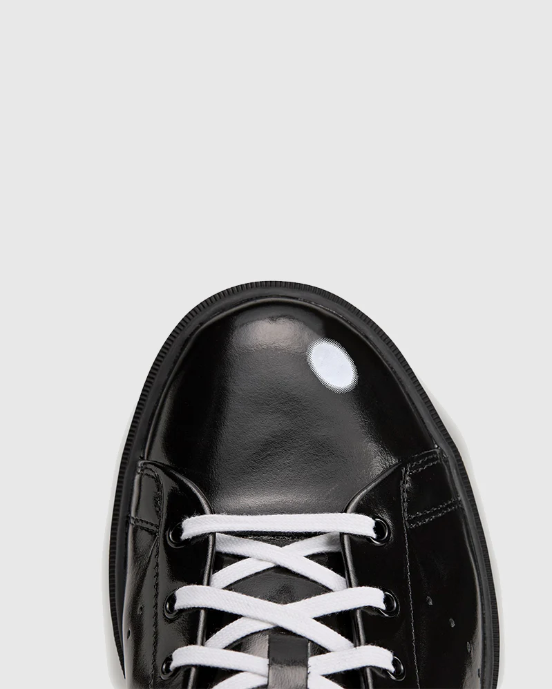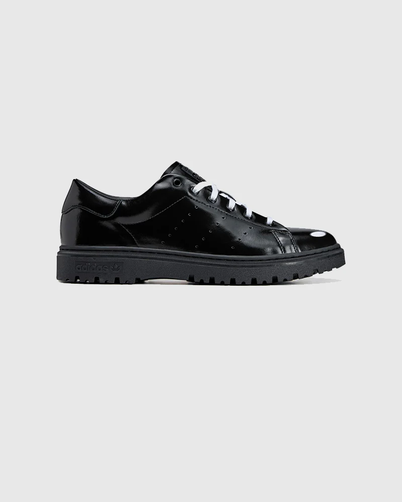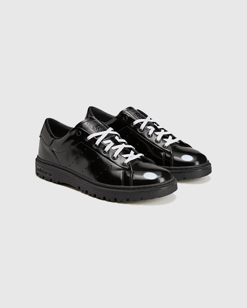 Le modèle est une Stan Smith revisitée chic et décalée sur du cuir vernis.