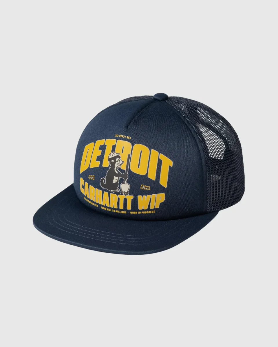 La casquette Underground Trucker Cap est un modèle cinq panneaux en mousse de polyester. Elle est dotée d’une visière ferme et plate. Un motif imprimé apparaît sur l’avant.