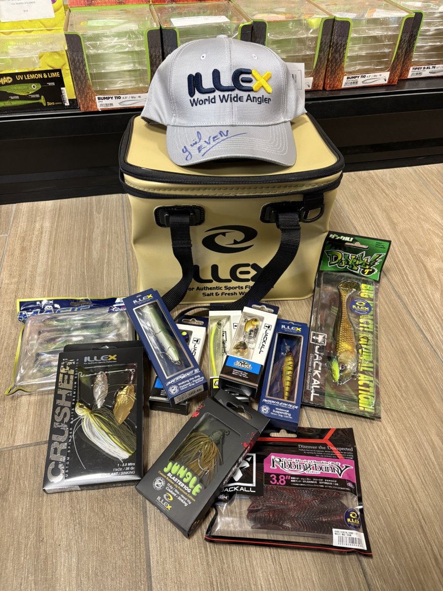 Un bakkan EVA SAFE BAG M coloris Sand Une sélection de 10 leurres pour la pêche des différents carnassiers (80% dur et 20% souple) Une casquette ILLEX RAIN TUCKER CAP Edition Limitée