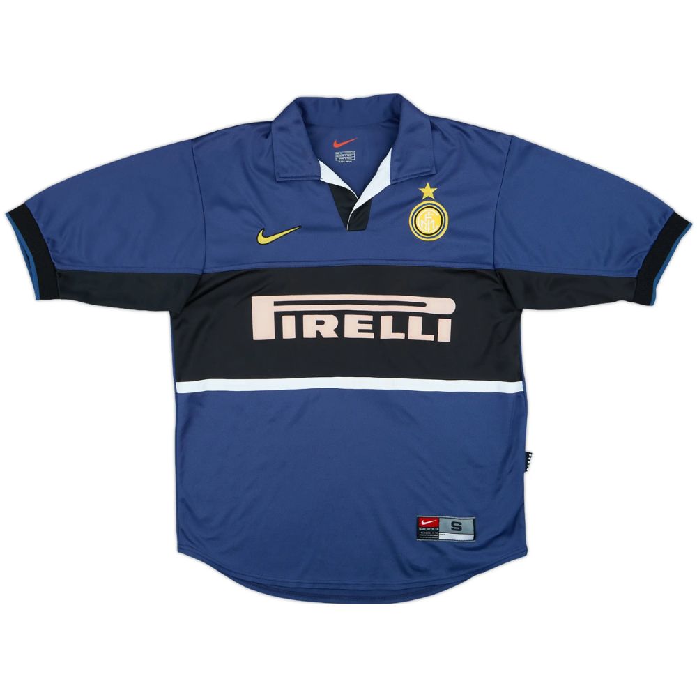 La saison 1998-1999 est marquée par l’intensité de Diego Simeone, joueur clé du milieu de terrain de l’Inter. Ce maillot third, moins courant mais extrêmement symbolique, représente une version alternative très appréciée des supporters et collectionneurs. Son design audacieux et unique en fait une pièce iconique, reflétant parfaitement le style innovant de Nike à cette période.
