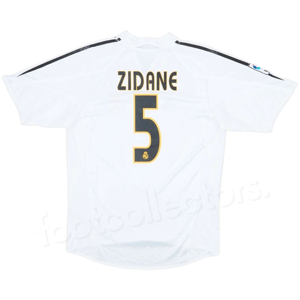 • Numéro 5 et nom Zidane imprimés au dos en noir bordé d’or, avec crest du club sur les chiffres