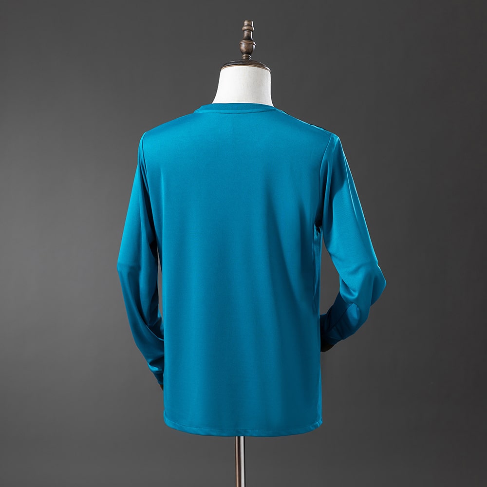Le maillot retro vintage third du Real Madrid pour la saison 2017-2018, version manches longues, est un modèle audacieux et moderne signé Adidas. Arborant une teinte turquoise inédite, il rend hommage à la gloire européenne du club tout en symbolisant l’innovation et la puissance du Real Madrid sous Zinedine Zidane. Ce maillot illustre la confiance d’une équipe qui allait conquérir une troisième Ligue des Champions consécutive.