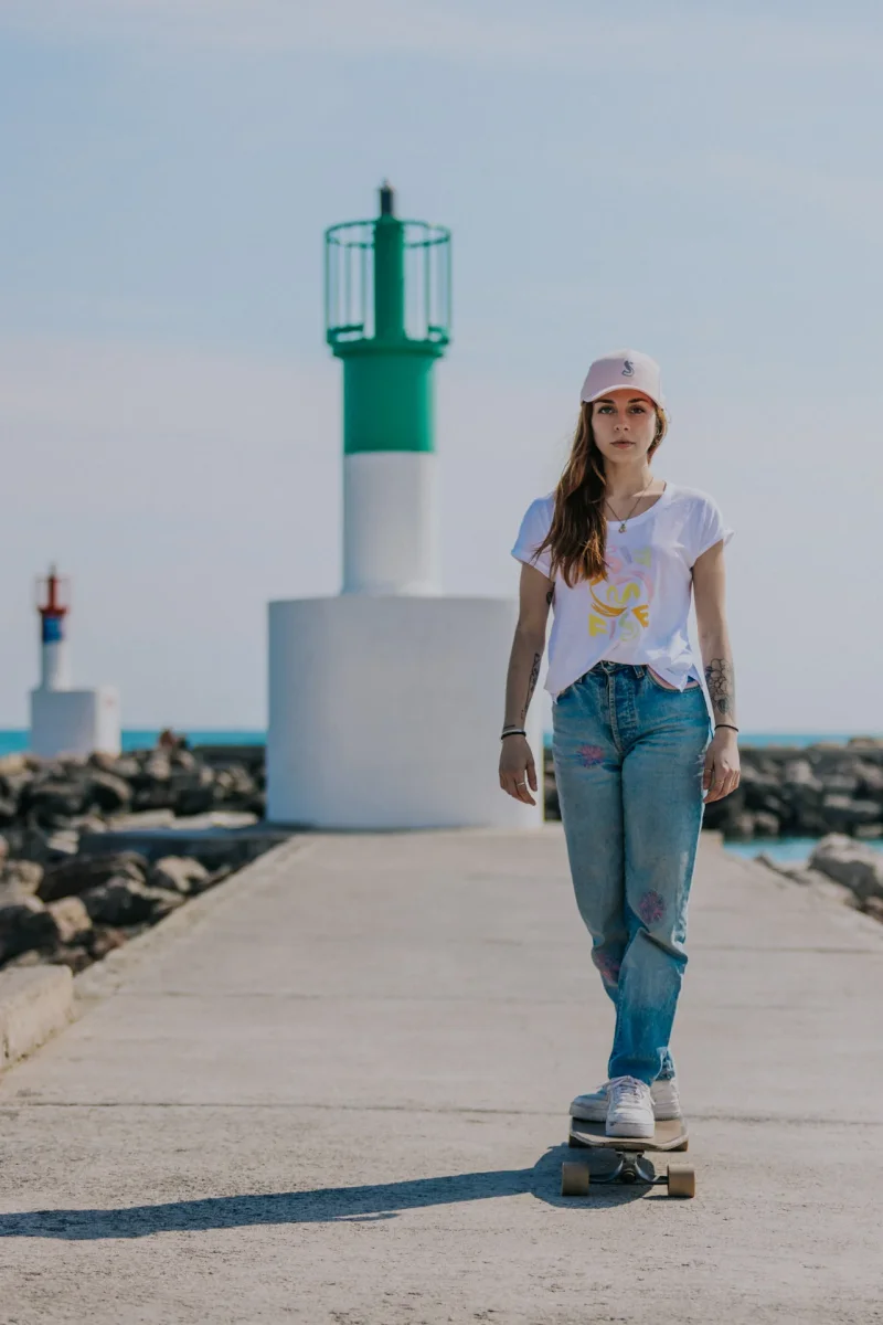 PINK S – Casquette Des looks de la tête aux pieds Couleur rose Visière arrondie Ajustable par languette de réglage Design imprimé sur le devant