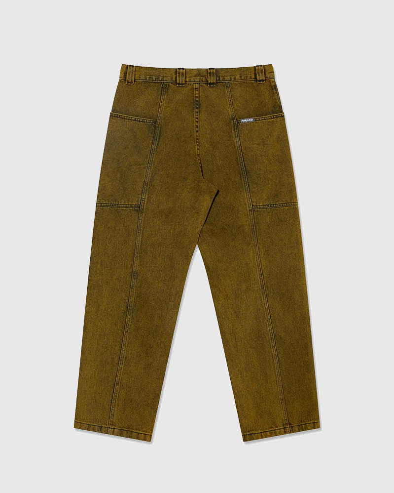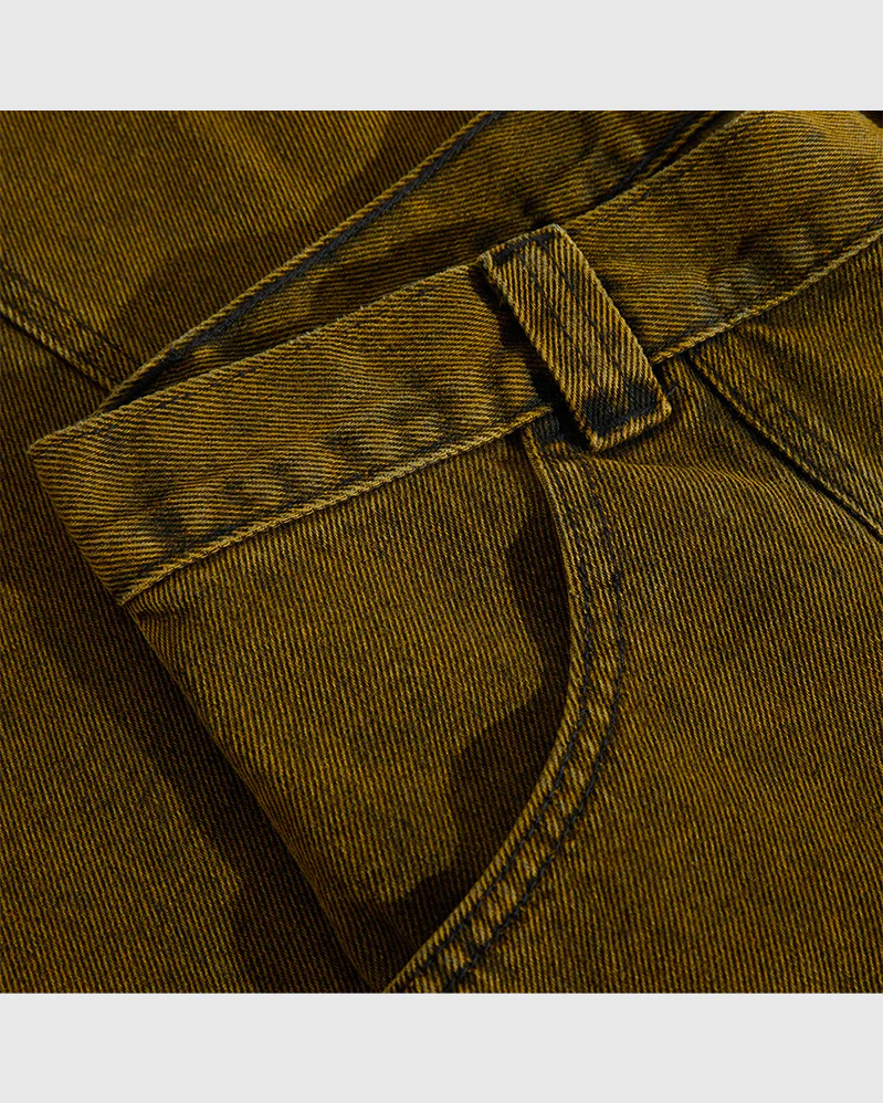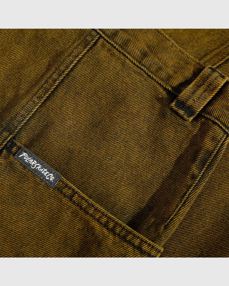 100% Cotton 435 gsm Denim fabric Garment dyed Stone washed Silver metal YKK button YKK zip fly Woven label Front and back vertical seams Two side pockets Low waist