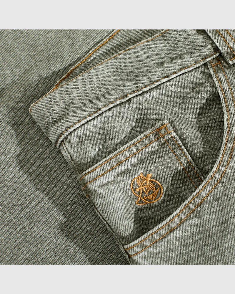 Eucalyptus 100% Cotton Denim Fabric 380 gsm YKK Zipper Embroidery on Change Pocket Woven Label on Waist Low Waist Baggy Fit