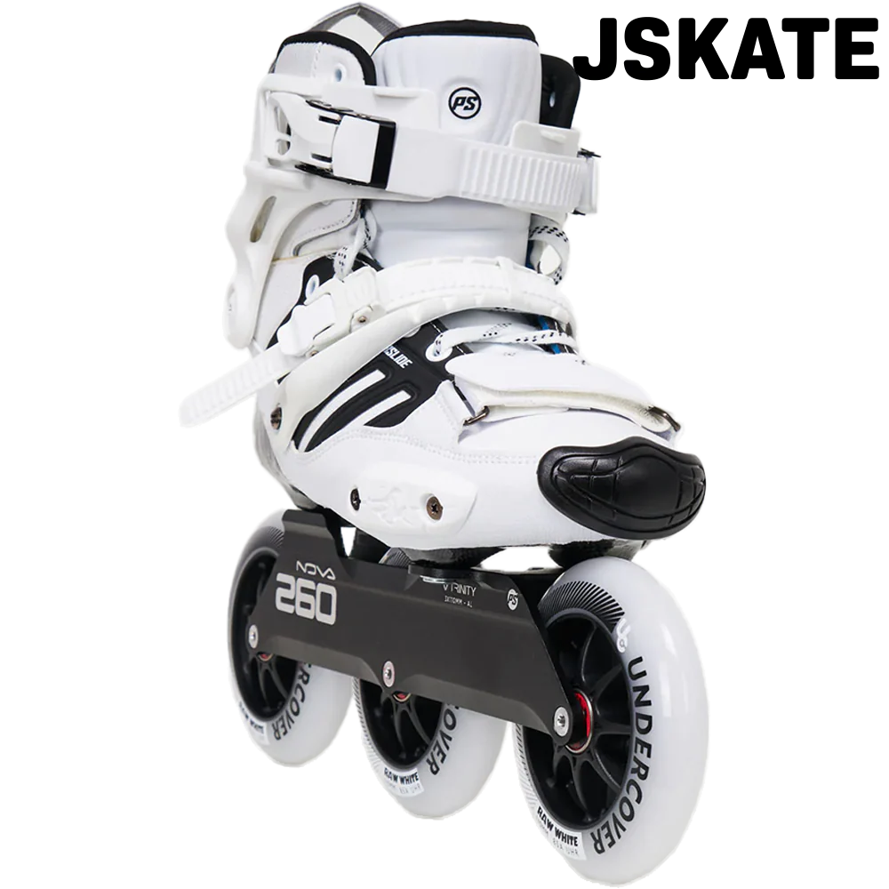 Doté de roues de 110 mm, il garantit une vitesse impressionnante et une stabilité accrue, idéale pour les skateurs avancés souhaitant repousser leurs limites. Grâce à sa platine Trinity en aluminium, il assure une transmission de puissance efficace et un centre de gravité abaissé, améliorant ainsi l’équilibre et la maniabilité.