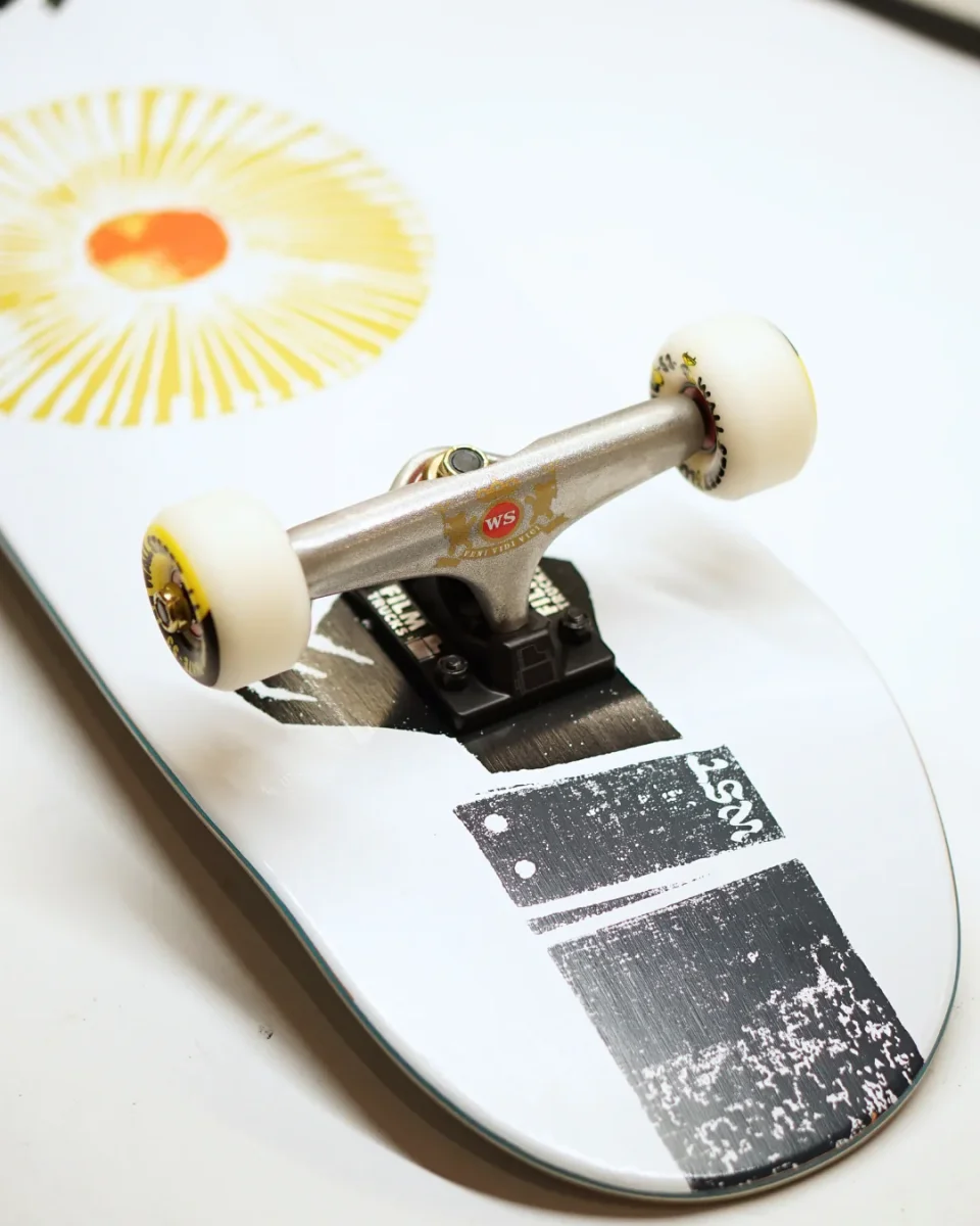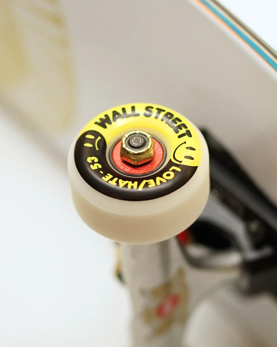 Roues : Wallstreet Wheels – disponibles en 53 mm ou 54 mm selon votre préférence.